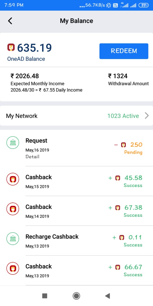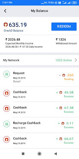 • Here My income with OneAd App