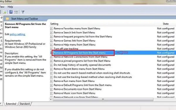 Now double click on “Remove All Programs List from the Start Menu” so you can see a new window.
