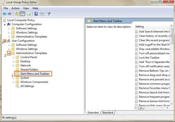 When you click on the “Administrative Templates” option so this time you can see eight other options under the “Administrative Templates” menu. Now we have a need to click on the “Start Menu and Taskbar” option.