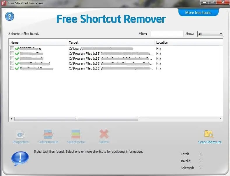 You can’t able to select all viruses with just one click. This is the biggest problem in this “Free Shortcut Remover” software. Now delete all viruses viruses you have selected.